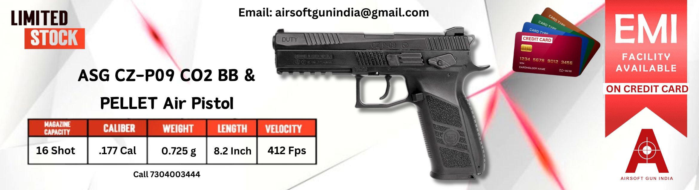 ASG CZ P-09 Black BB And Pellet .177Cal, 4.5mm Air Pistol By Airsoft Gun India