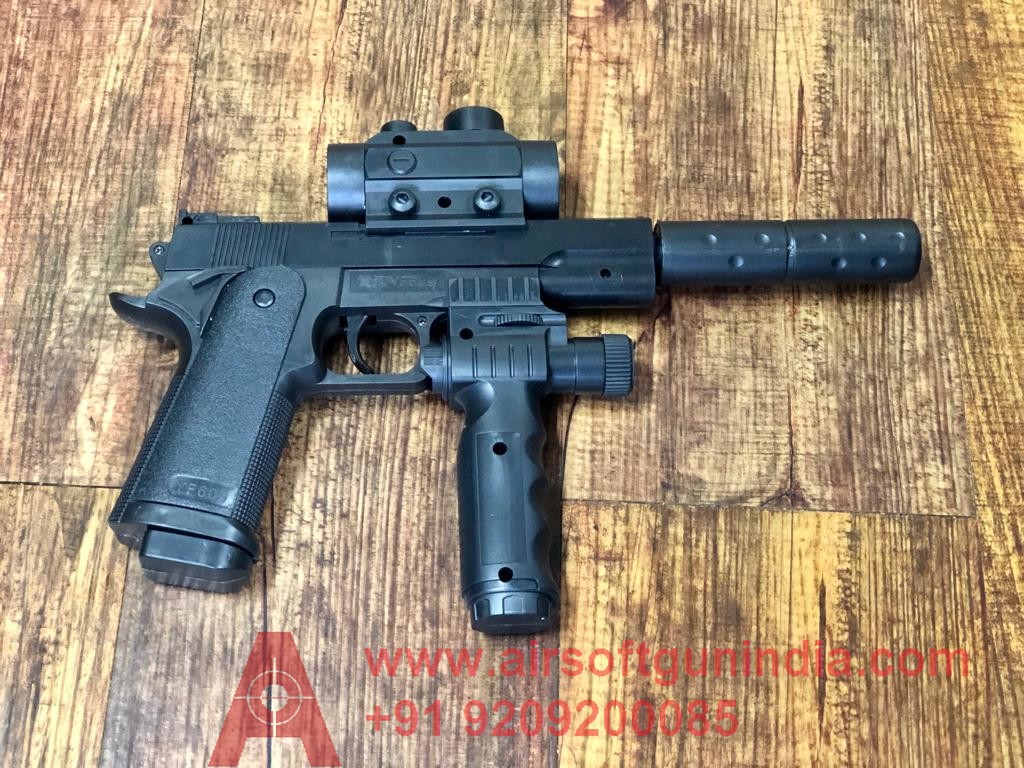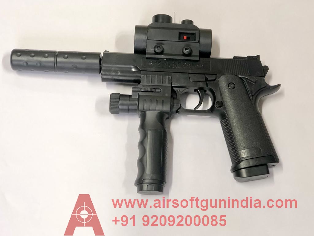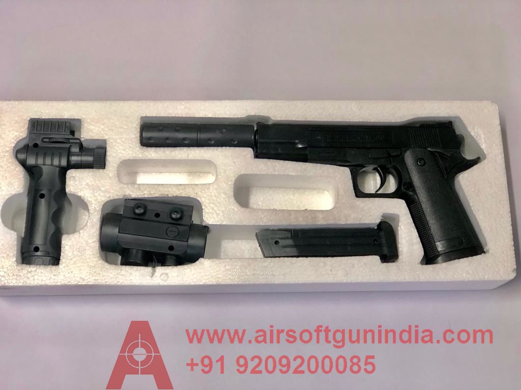 Airsoft gun india present 1911 tactical its a plastic made tactical toy airsoft pistol good for playing it fires plastic ball for playing length - 29 cm ,width - 14 cm ,thickness- 3cm . weight - 300gm