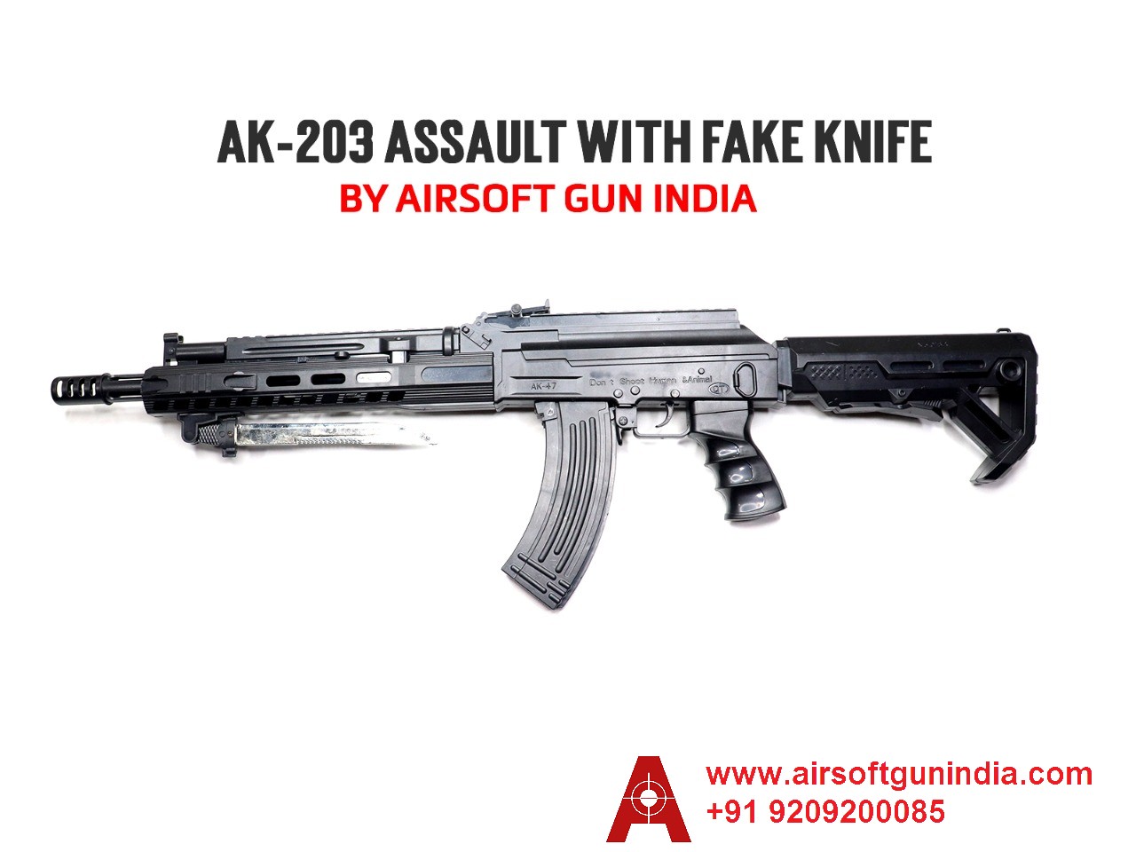 AK-203 Assault Airsoft Rifle With A Fake Knife by Airsoft Gun India.
