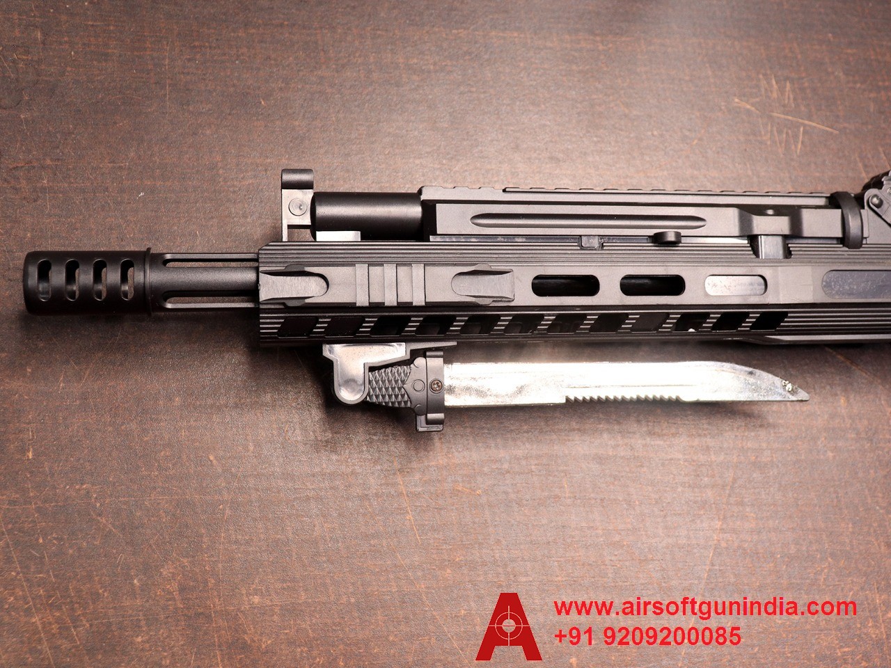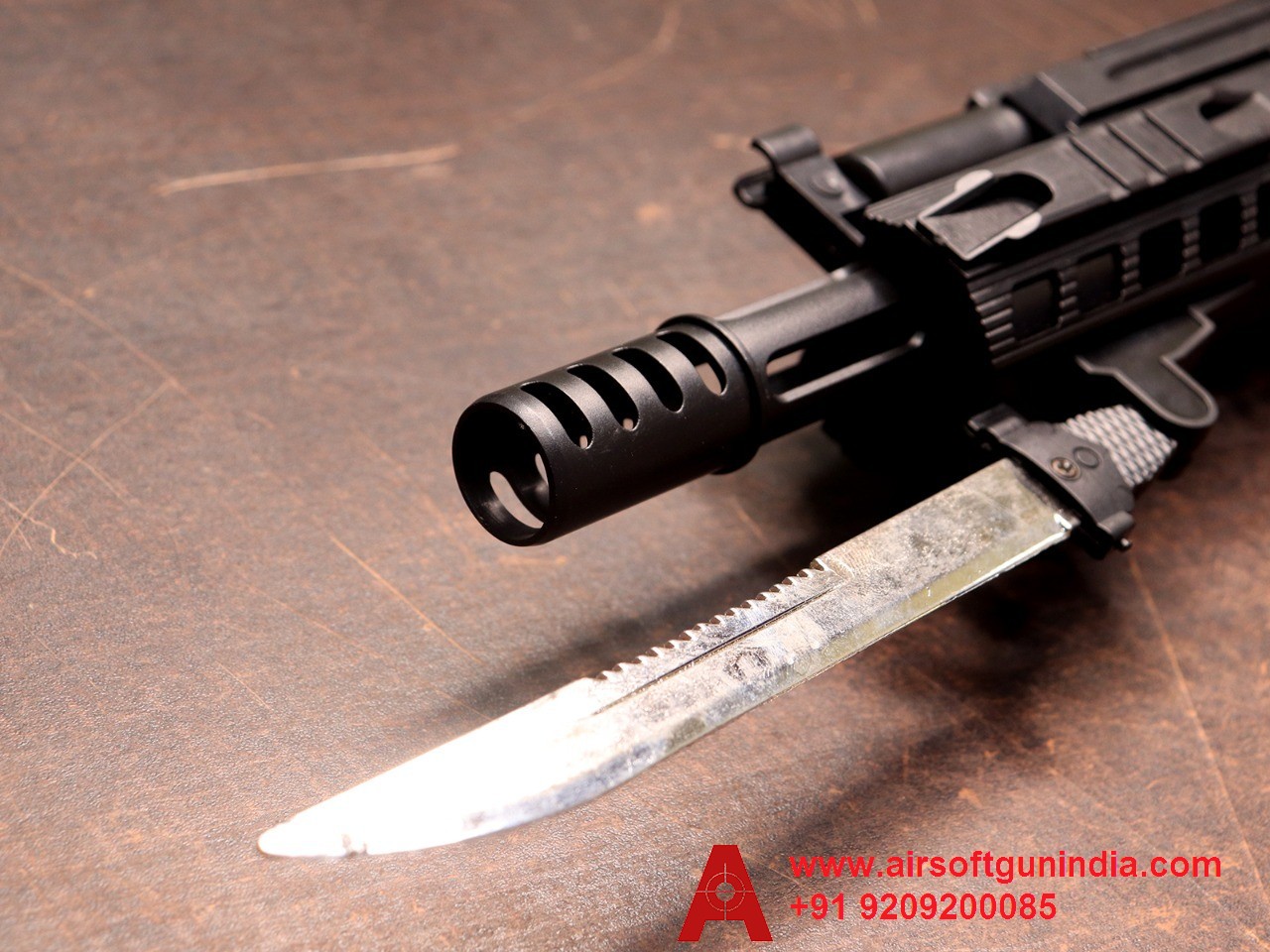 AK-203 Assault Airsoft Rifle with a fake knife by Airsoft gun India.