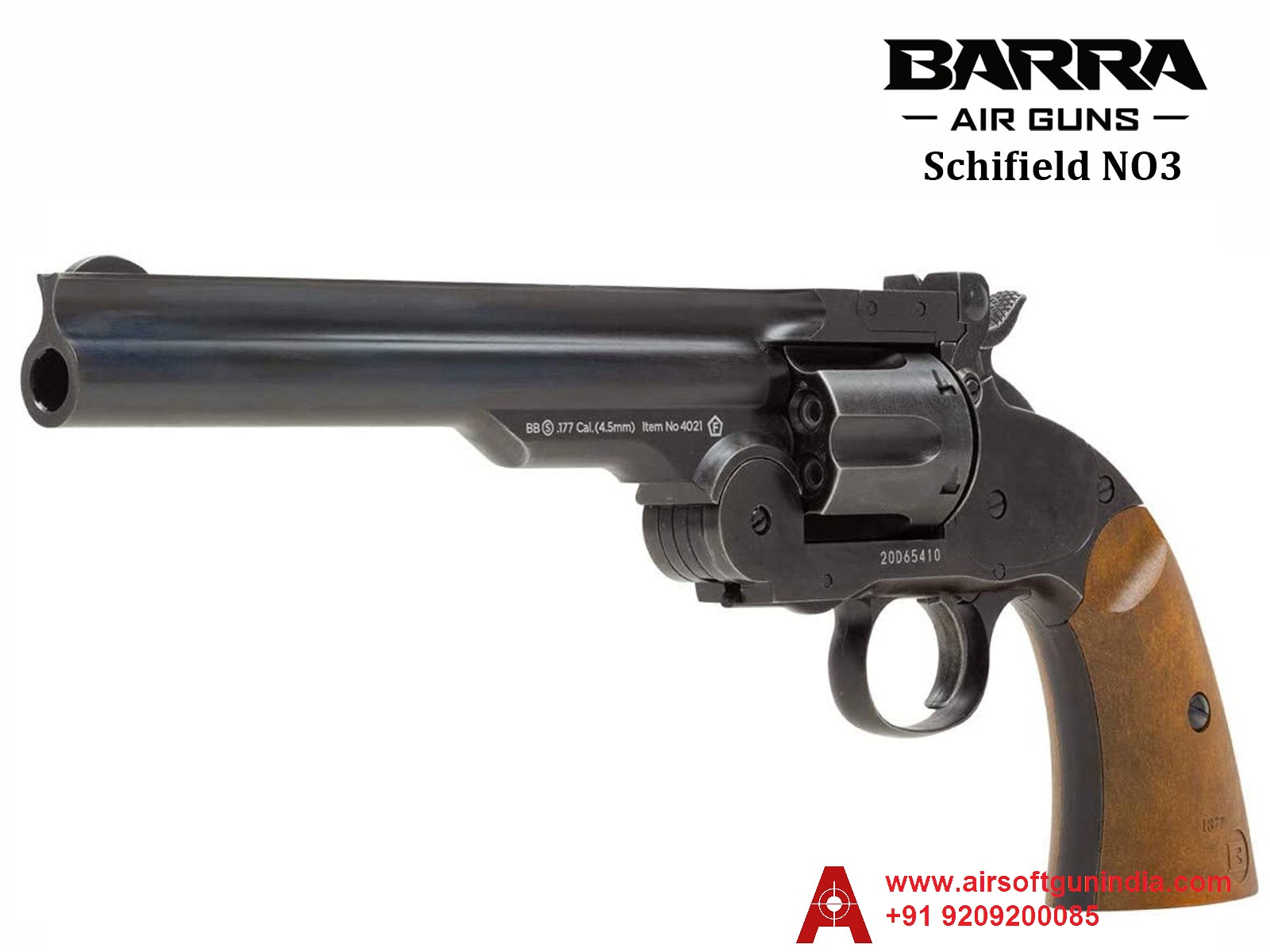 BARRA SCHOFIELD NO. 3 CO2 BB REVOLVER FULL BLACK BY AIRSOFT GUN INDIA