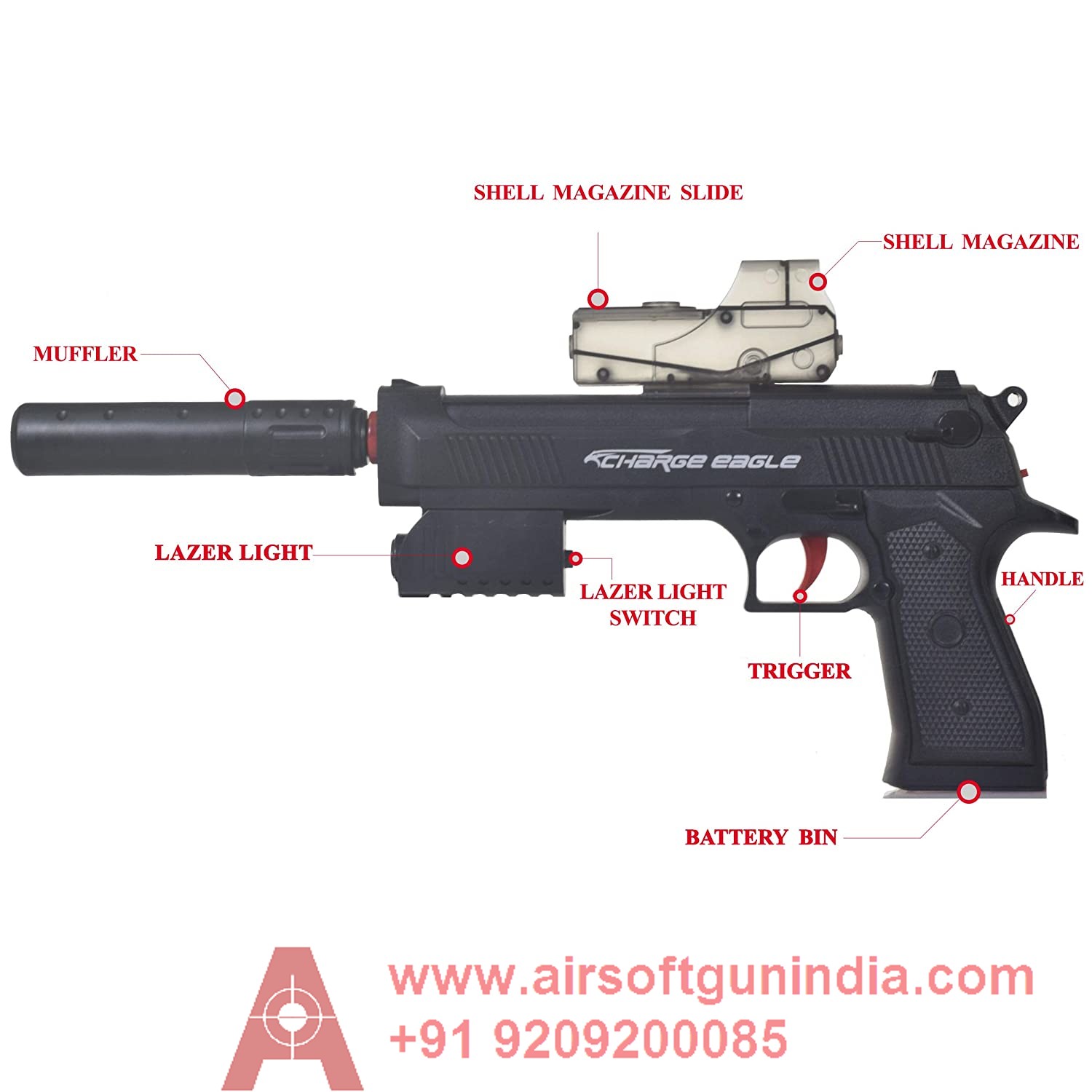 Beretta Style (Desert Eagle) Automatic Gel Blaster EBB Toy Pistol For Kids By Airsoft Gun India
