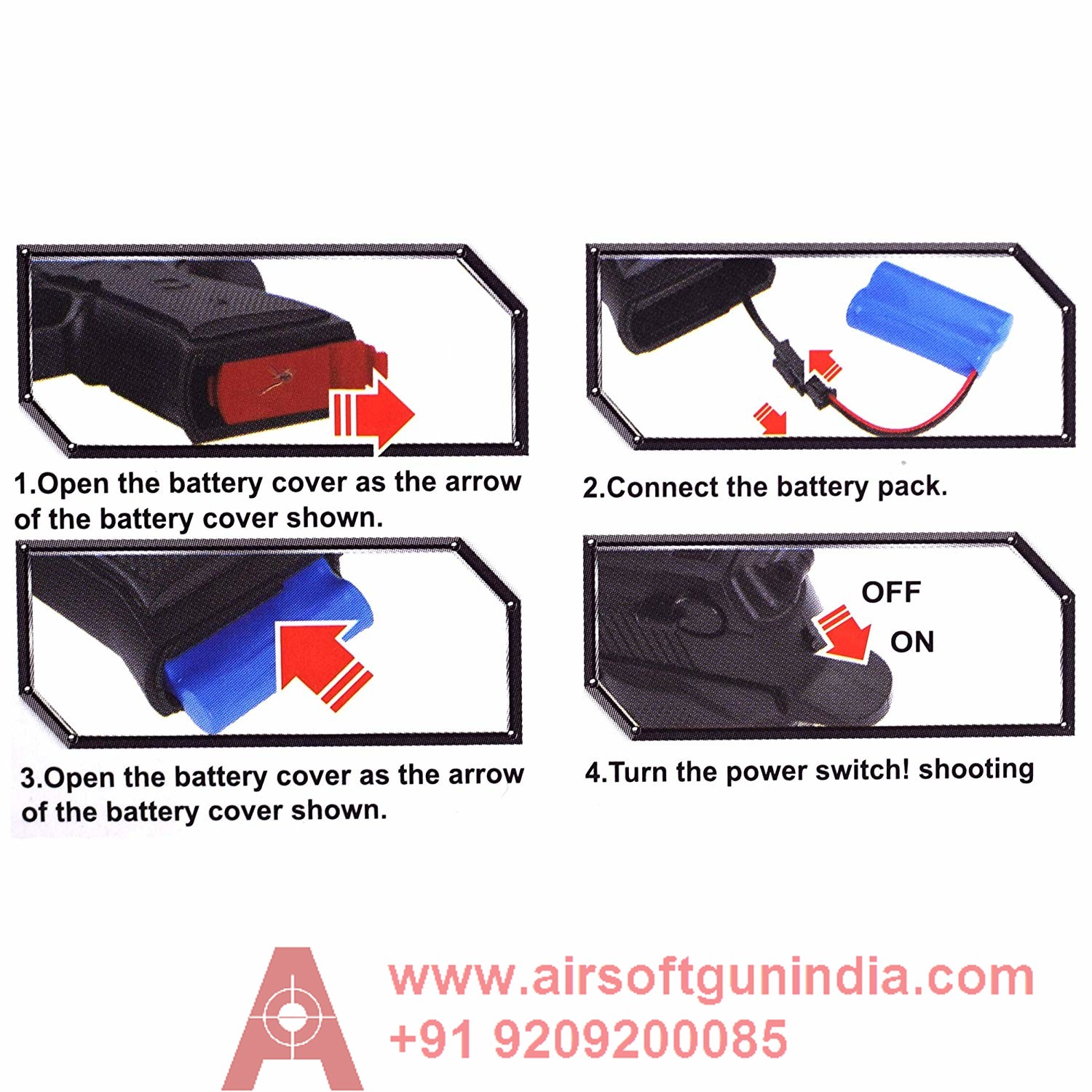 The gun runs on a rechargeable battery (included). It supports USB charging. Just load the bullets in the launching tube, switch on the power button and then pull the trigger and your child is ready to experience the passion gun battle.