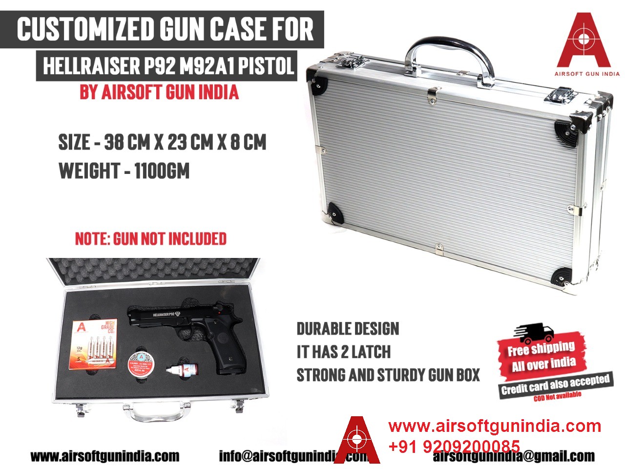 Airsoft gun India is back with one of the most amazing storage boxes, a very strong and sturdy gun box that's customized specially for Hellraiser P92 M92A1 Co2 BB Pistol By Airsoft Gun India