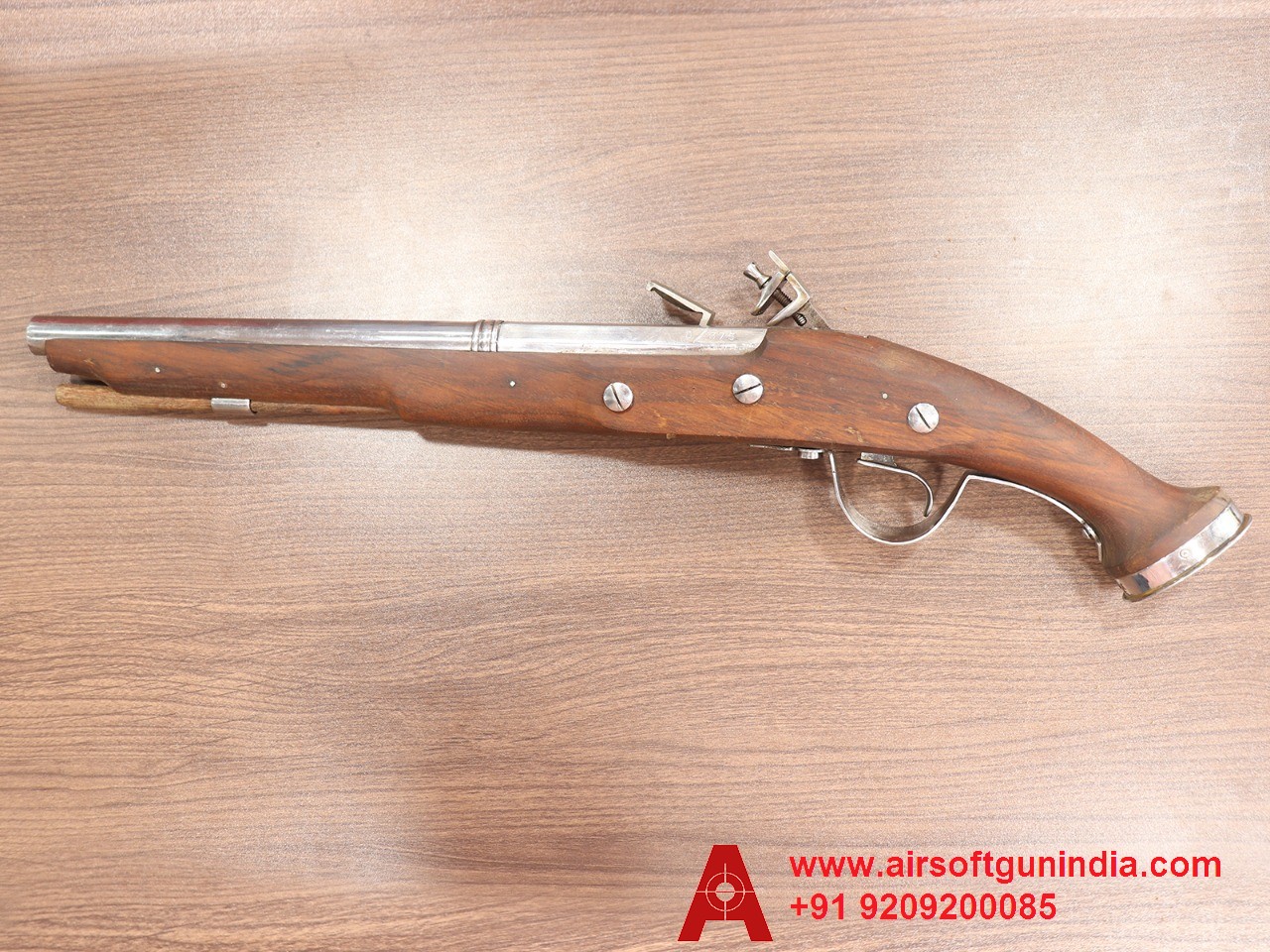 Immerse yourself in the allure of class and history with our exceptional Flintlock (Doglock) Muzzle Loading Replica in a sophisticated light brown hue. This handcrafted non-firing replica is a testament to fine craftsmanship, making it an indispensable addition to any gun lover's collection. Transporting you to a bygone era, this replica, famously featured in the Hera Pheri movie, captures the authenticity of old-world design.