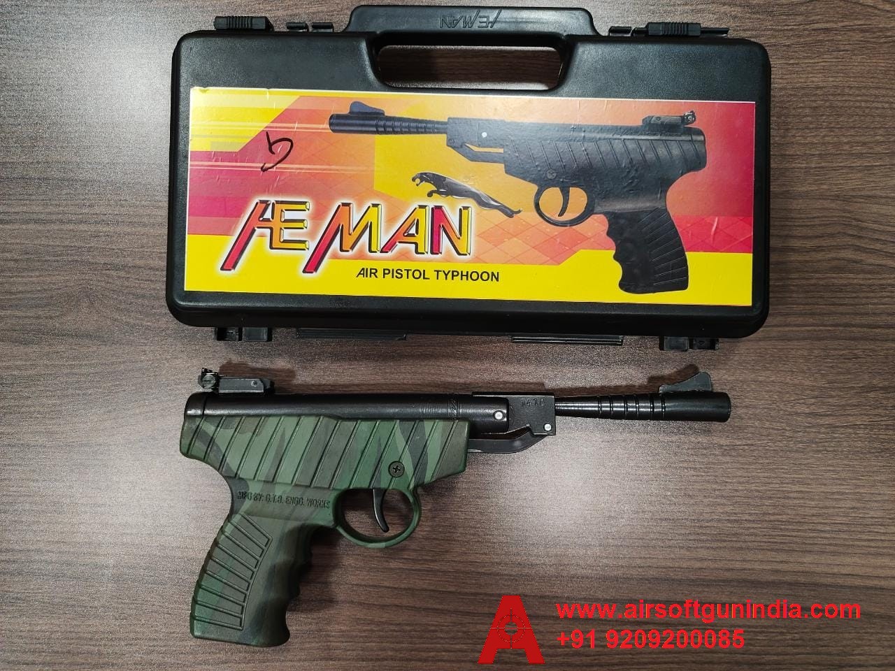 Heman Air Pistol Army Colour With Case Single-Shot .177 Caliber / 4.5 Mm Indian Air Pistol By Airsoft Gun India