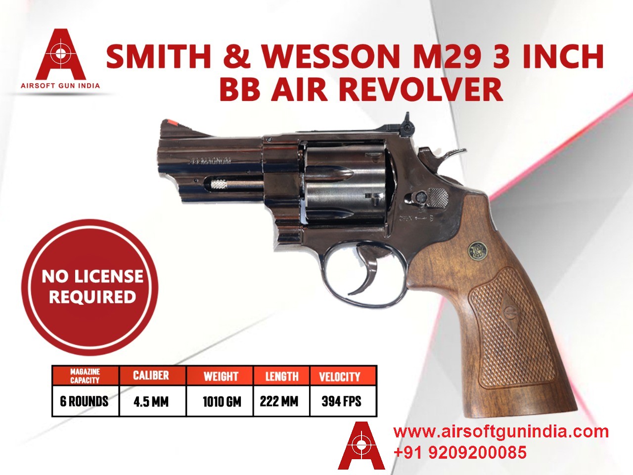 Smith & Wesson M29 3 Inch .177Cal, 4.5mm Co2 BB Air Revolver By Airsoft Gun India.