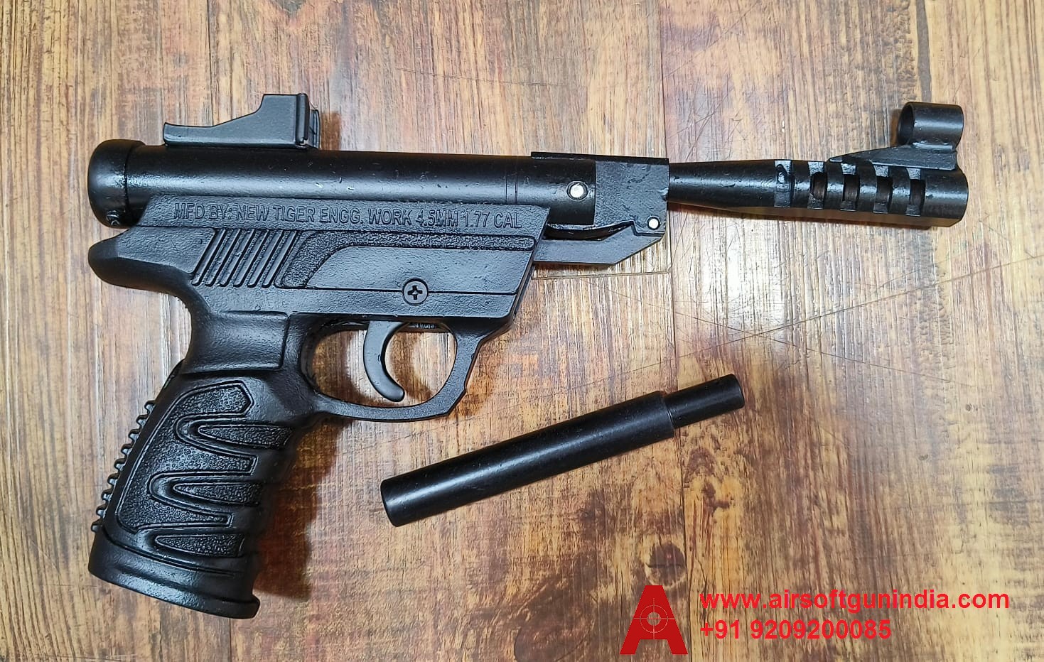 It's an Indian-made Single-shot .177 Caliber / 4.5 mm Air pistol, that uses .177 Indian pellets as ammo.